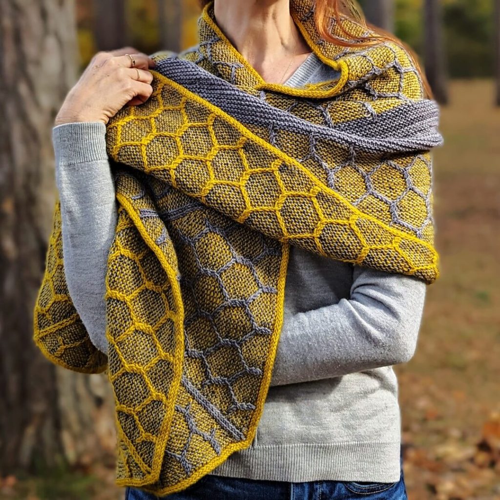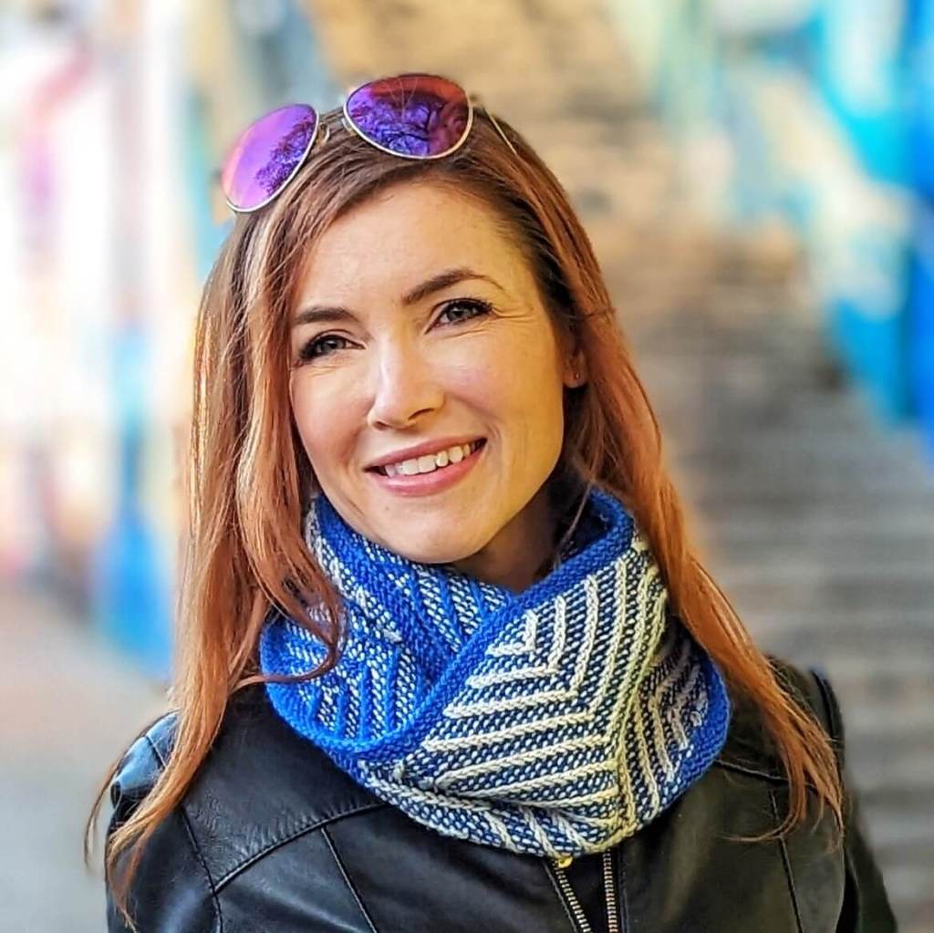 Fusion knitting is a reversible colourwork technique where slipped stitches are placed on both sides of the fabric to create design elements. The design on one side of the fabric is mirrored on the back — in other words, the designs from each side are fused together.